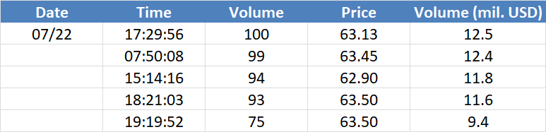 A legnagyobb volumenű tranzakciók az OIL (Brent) instrumentumon: