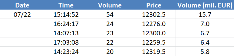 A legnagyobb volumenű tranzakciók a DAX részvényindexen: