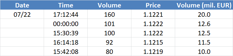 A legnagyobb volumenű tranzakciók a EURUSD devizapáron: