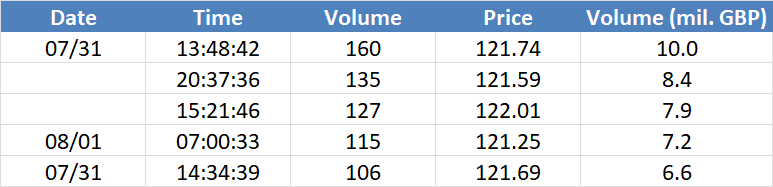 A legnagyobb volumenű tranzakciók a GBPUSD devizapáron: