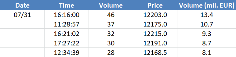 A legnagyobb volumenű tranzakciók a DAX részvényindexen: