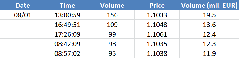 A legnagyobb volumenű tranzakciók a EURUSD devizapáron: