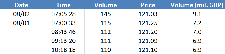 A legnagyobb volumenű tranzakciók a GBPUSD devizapáron:
