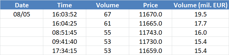 A legnagyobb volumenű tranzakciók a DAX részvényindexen: