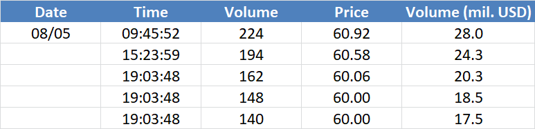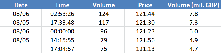 A legnagyobb volumenű tranzakciók az OIL (Brent) instrumentumon: