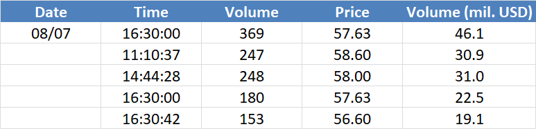 A legnagyobb volumenű tranzakciók az OIL (Brent) instrumentumon: