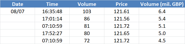 A legnagyobb volumenű tranzakciók a GBPUSD devizapáron: