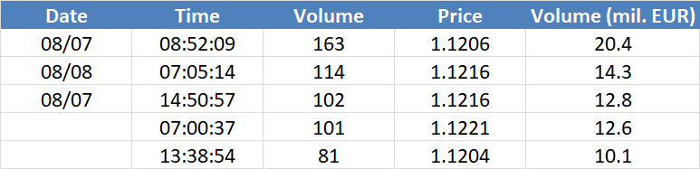 A legnagyobb volumenű tranzakciók a EURUSD devizapáron: