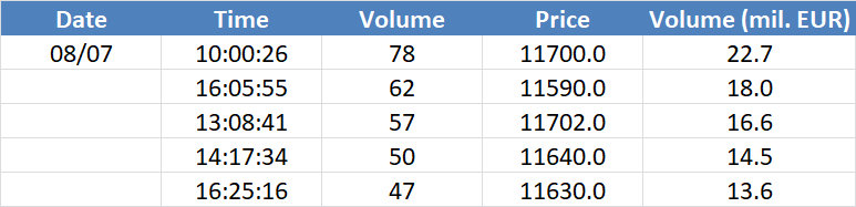 A legnagyobb volumenű tranzakciók a DAX részvényindexen: