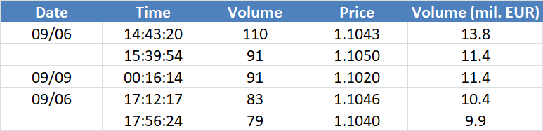 A legnagyobb volumenű tranzakciók a EURUSD devizapáron: