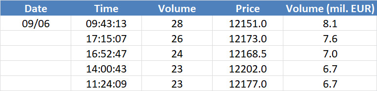 A legnagyobb volumenű tranzakciók a DAX részvényindexen: