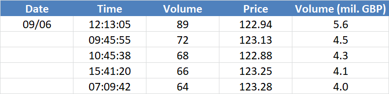 A legnagyobb volumenű tranzakciók a GBPUSD devizapáron: