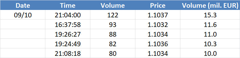 A legnagyobb volumenű tranzakciók a EURUSD devizapáron: