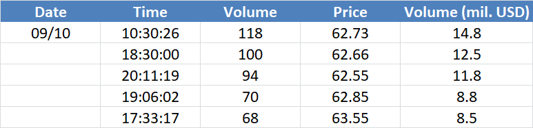 A legnagyobb volumenű tranzakciók az OIL (Brent) instrumentumon: