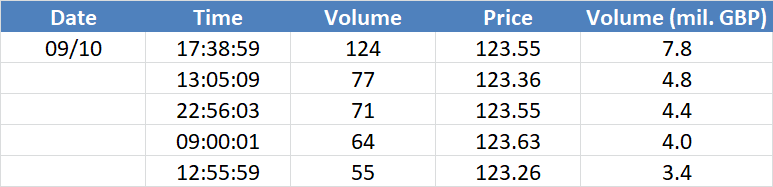 A legnagyobb volumenű tranzakciók a GBPUSD devizapáron: