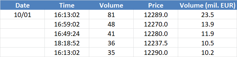 A legnagyobb volumenű tranzakciók a DAX részvényindexen:
