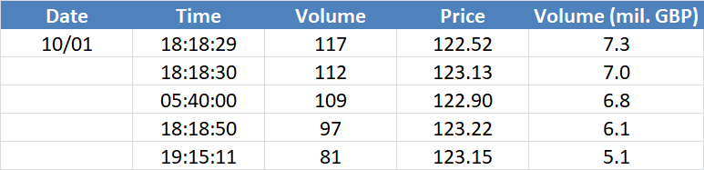 A legnagyobb volumenű tranzakciók a GBPUSD devizapáron: