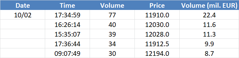 A legnagyobb volumenű tranzakciók a DAX részvényindexen:
