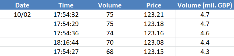 A legnagyobb volumenű tranzakciók a GBPUSD devizapáron: