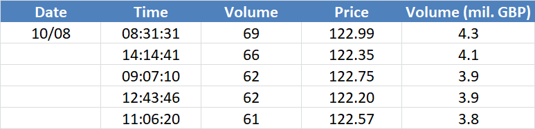 A legnagyobb volumenű tranzakciók a GBPUSD devizapáron: