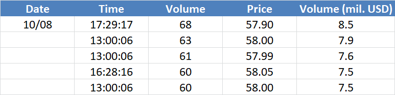 A legnagyobb volumenű tranzakciók az OIL (Brent) instrumentumon: