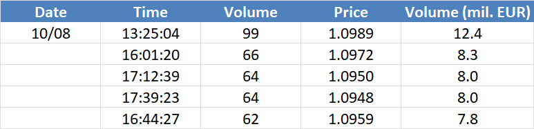 A legnagyobb volumenű tranzakciók a EURUSD devizapáron: