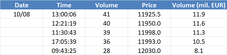 A legnagyobb volumenű tranzakciók a DAX részvényindexen: