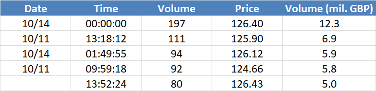 A legnagyobb volumenű tranzakciók az OIL (Brent) instrumentumon: