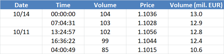A legnagyobb volumenű tranzakciók a EURUSD devizapáron: