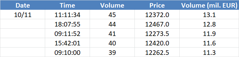 A legnagyobb volumenű tranzakciók a DAX részvényindexen: