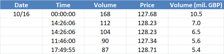 A legnagyobb volumenű tranzakciók a GBPUSD devizapáron: