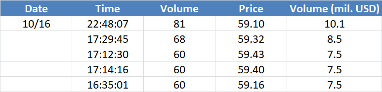 A legnagyobb volumenű tranzakciók az OIL (Brent) instrumentumon: