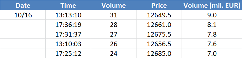 A legnagyobb volumenű tranzakciók a DAX részvényindexen: