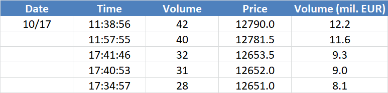 A legnagyobb volumenű tranzakciók a DAX részvényindexen: