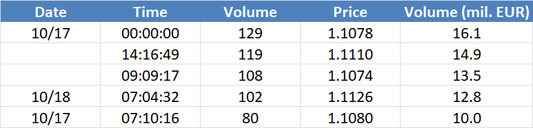 A legnagyobb volumenű tranzakciók a EURUSD devizapáron: