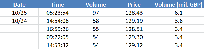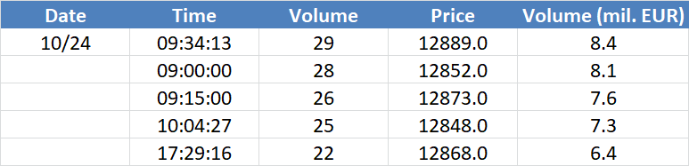 A legnagyobb volumenű tranzakciók az OIL (Brent) instrumentumon: