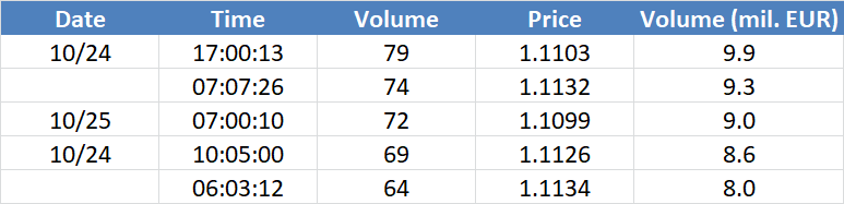 A legnagyobb volumenű tranzakciók a EURUSD devizapáron: