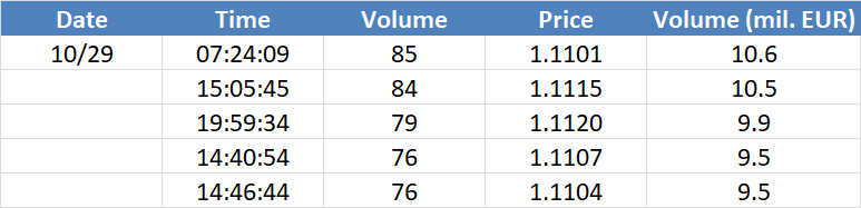 A legnagyobb volumenű tranzakciók a EURUSD devizapáron:
