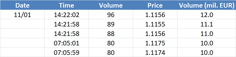 A legnagyobb volumenű tranzakciók a EURUSD devizapáron: