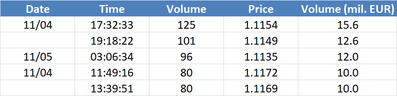 A legnagyobb volumenű tranzakciók a EURUSD devizapáron: