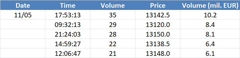 A legnagyobb volumenű tranzakciók a DAX részvényindexen: