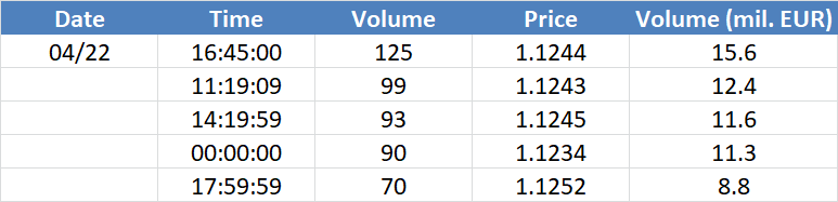 A legnagyobb volumenű tranzakciók az EURUSD devizapáron: