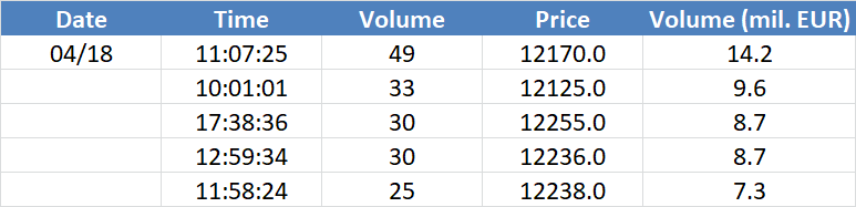 A legnagyobb volumenű tranzakciók a DAX részvényindexen: