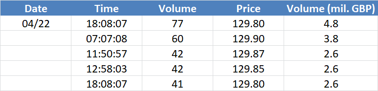 A legnagyobb volumenű tranzakciók a GBPUSD devizapáron:
