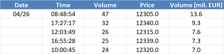 A legnagyobb volumenű tranzakciók a DAX részvényindexen: