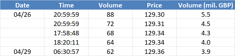 A legnagyobb volumenű tranzakciók a GBPUSD devizapáron: