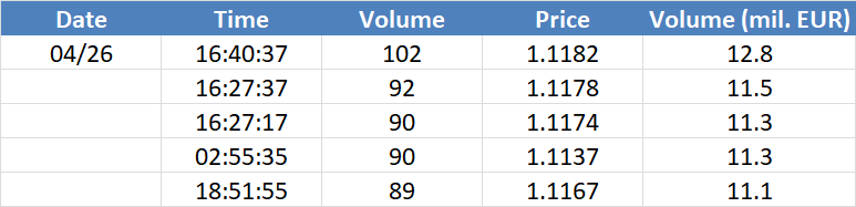 A legnagyobb volumenű tranzakciók az EURUSD devizapáron: