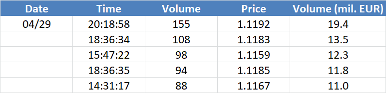 A legnagyobb volumenű tranzakciók az EURUSD devizapáron: