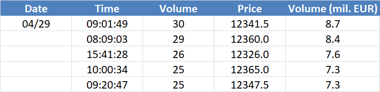 A legnagyobb volumenű tranzakciók a DAX részvényindexen: