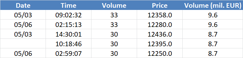 A legnagyobb volumenű tranzakciók a DAX részvényindexen: